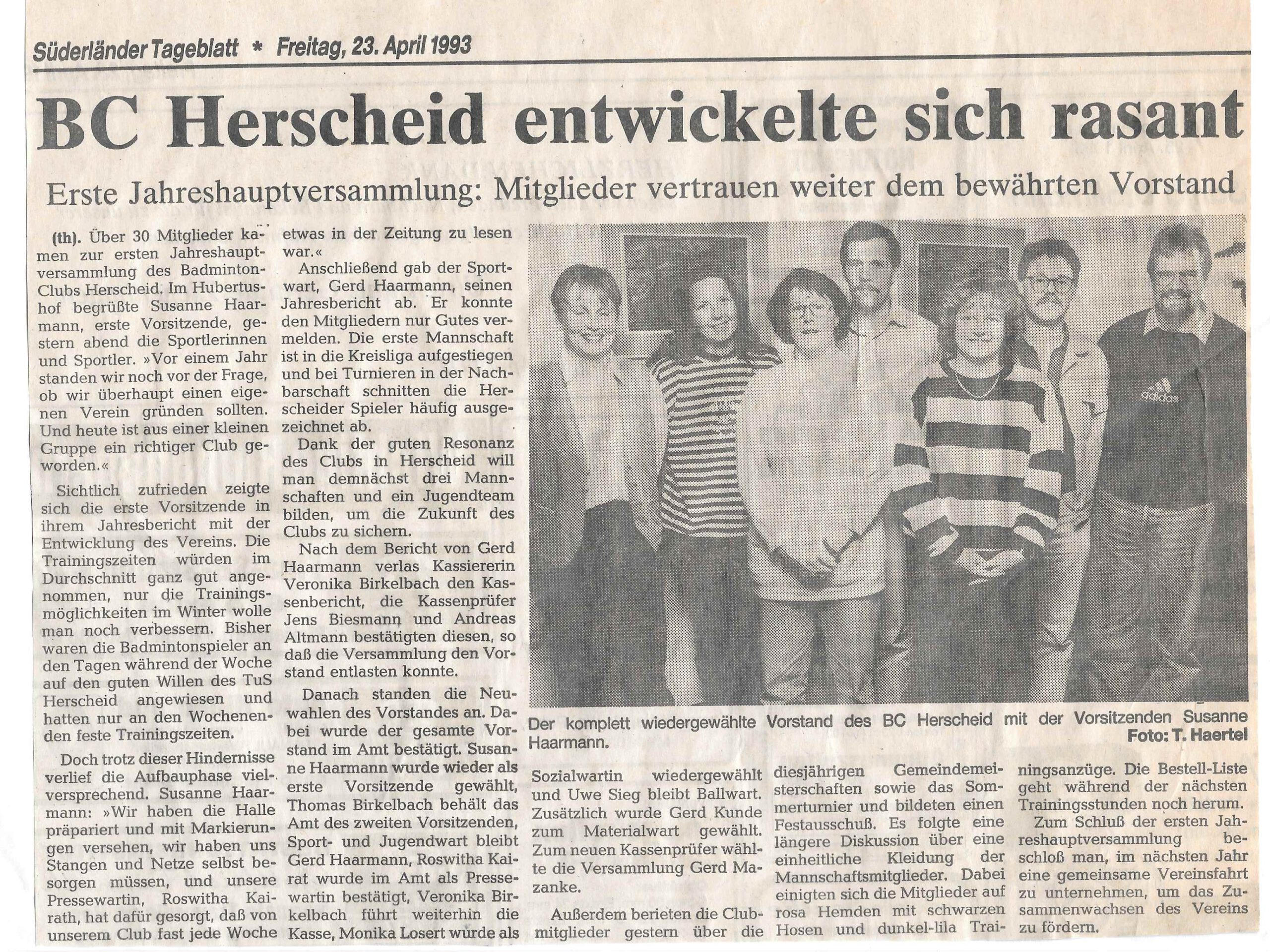 April 1993: 1. JHV des bc Herscheid